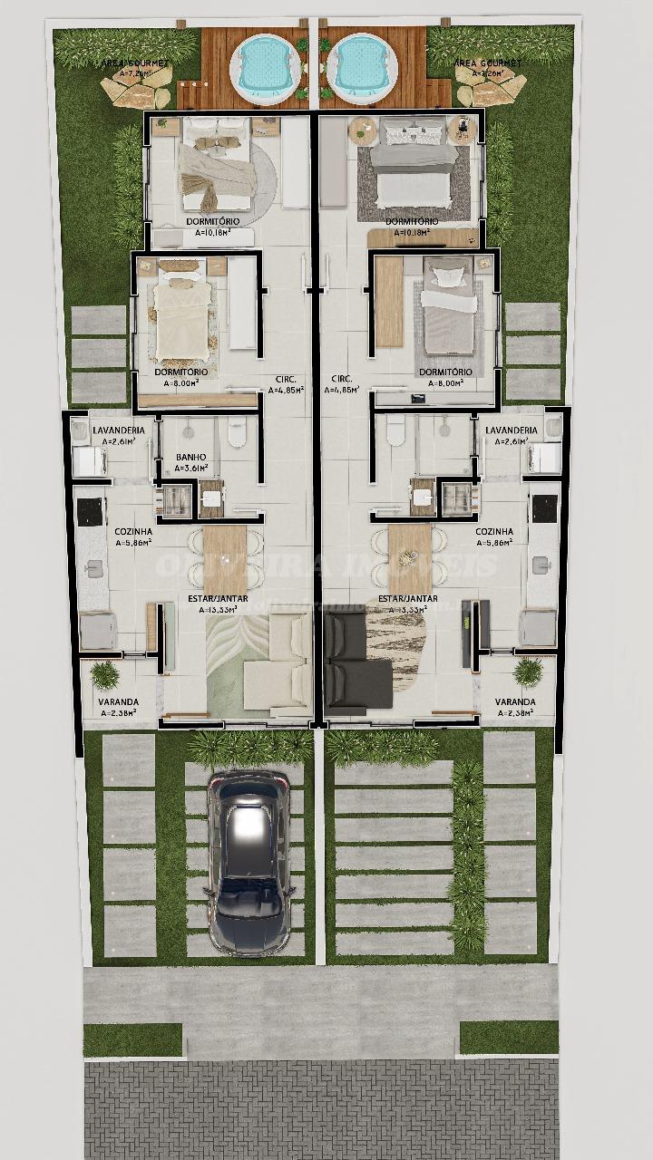 Dois geminados frente norte no Loteamento Jardim América, cada um composto por 2 dormitórios, banheiro social, sala e cozinha integradas, lavanderia, varanda e vaga de estacionamento descoberta. Opção de ofuro com pergolado nos fundos (custo adicional de R$ 20.000,00). Negociação facilitada, com possibilidade de 20% de entrada e saldo em até 20x direto com o proprietário ou financiamento bancário. Prazo de entrega até dezembro de 2025.